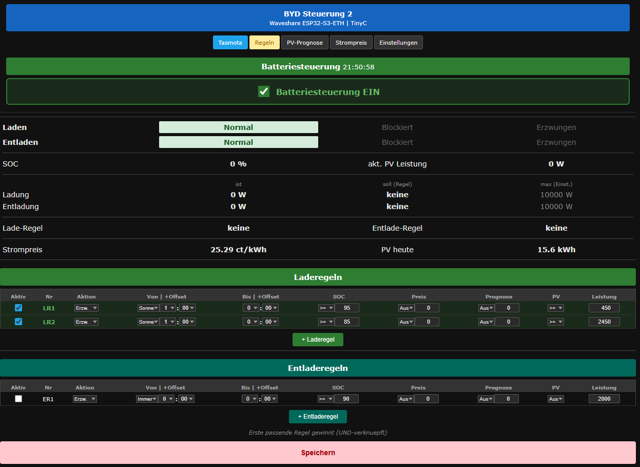 Main webUI — battery control rules¶