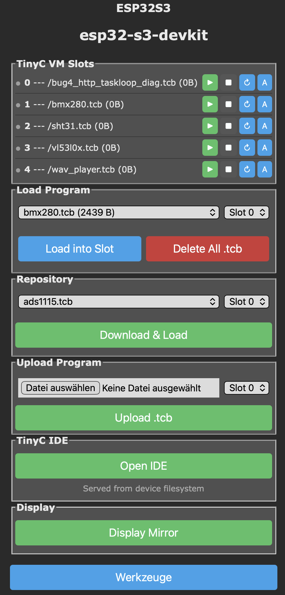 http://<device-ip>/tinyc_ide.htmlin your browser.